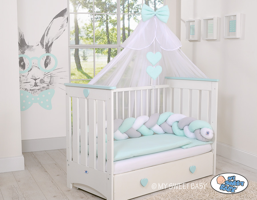Tour de Lit Tressé 1,8m Menthe Blanc Gris