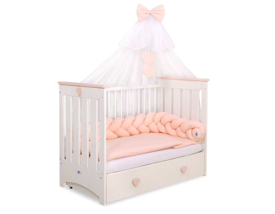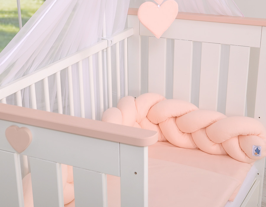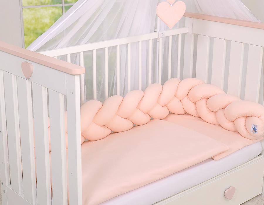 Magnifique tour de lit tressé très doux en 100% coton. Peut être fixé sur les barreaux.