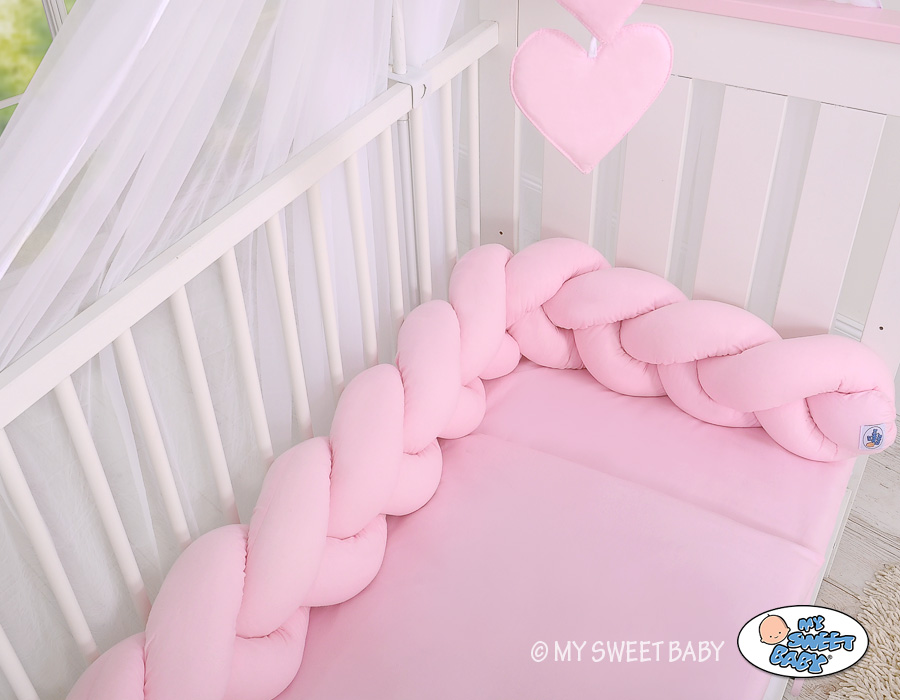 Magnifique tour de lit tressé très doux en 100% coton. Peut être fixé sur les barreaux.