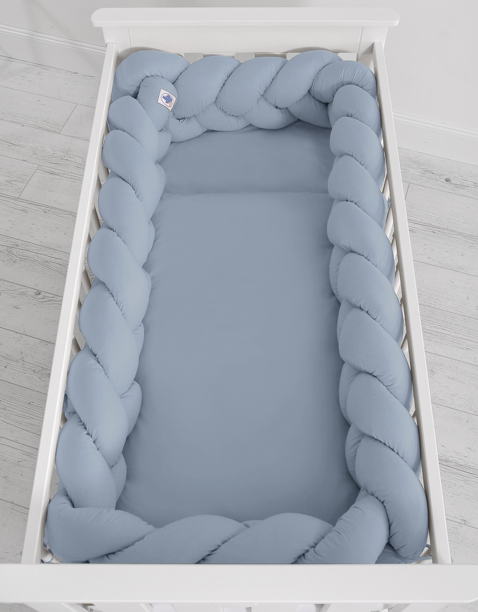 Magnifique tour de lit tressé très doux en 100% coton. Peut être fixé sur les barreaux.