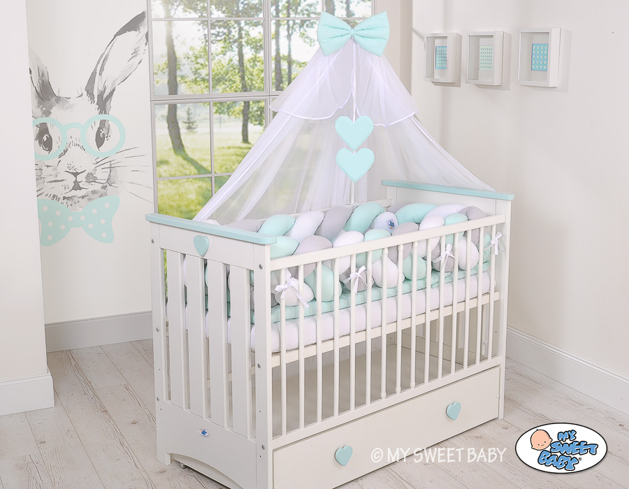 Tour de Lit Tressé pour Bébé 3,6m Menthe Blanc Gris