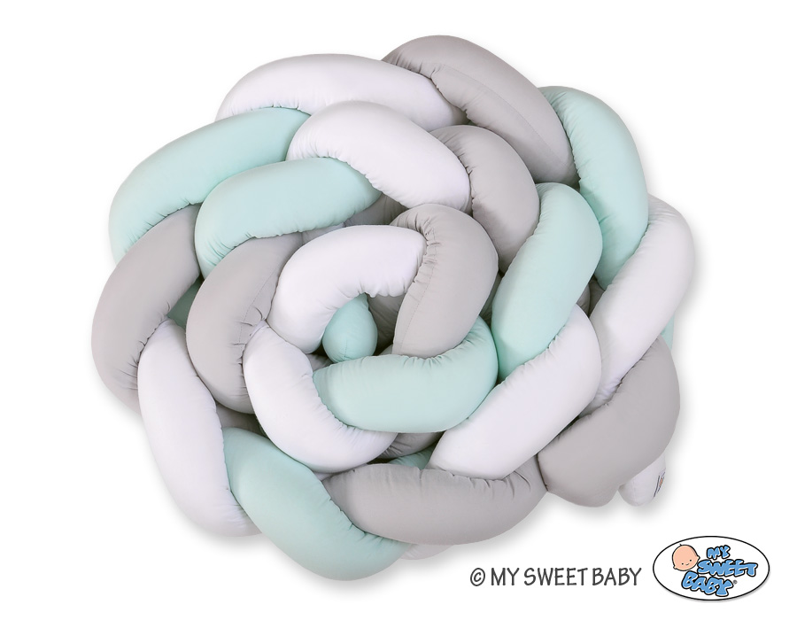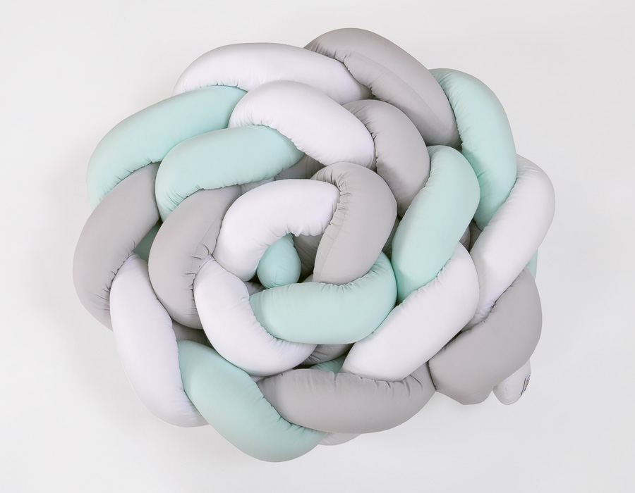 Bébé chambre » Collection tressé Magic Loop » Tours de lit tressé » Tour de Lit Tressé pour Bébé 3,6m Menthe Blanc Gris