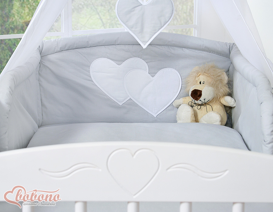 Bébé chambre » Linge de lit bébé » Linge de lit bébé Cœurs » Linge de lit bébé 120cm Cœurs » Tour de lit bébé » Tour de Lit Universel pour Lit Bébé a Barreaux Gris Cœurs